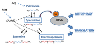 Metabolismo de poliaminas en la célula vegetal. PAs-Poliaminas; PUT-Putrescina sintasa; TSPMs-termospermina sintasa; SPDSs-Espermidina sintasa; SPMS-Espermina sintasa